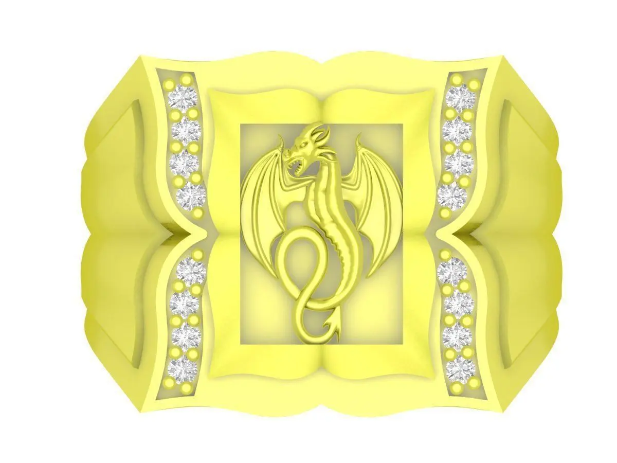 This luxury symbol signet ring 3D model features a bold and masculine design with a raised emblem at the center, framed by clean geometric lines and refined stone settings along both sides. The ring is designed to convey strength, identity, and prestige, making it suitable for statement jewelry and custom signet collections.