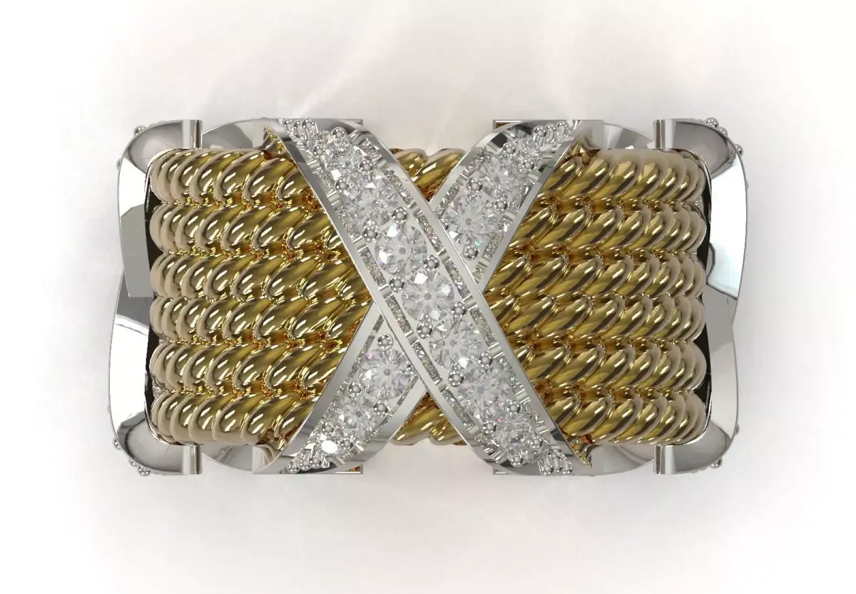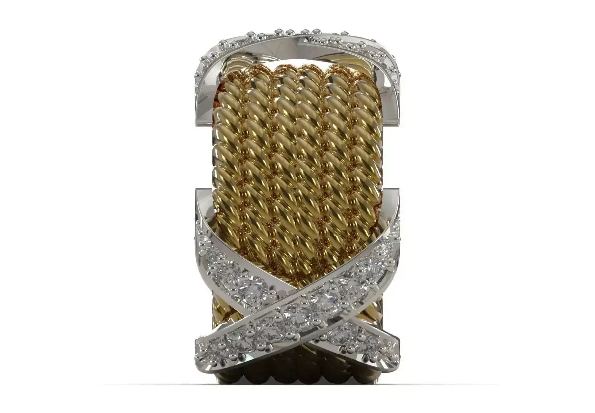 | Feature | Description || :--- | :--- || Product Code | JR00005 || File Type | Standard Jewelry File (STL 3DM) || Style | Luxury, Coarse, Two-Tone, Pavé || Ready for | 3D Printing, Casting, and Precision Machining || Suitable for Materials | Gold (White/Yellow), Platinum |