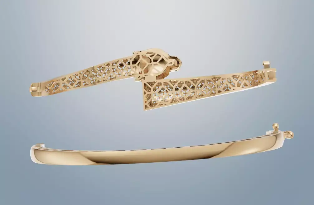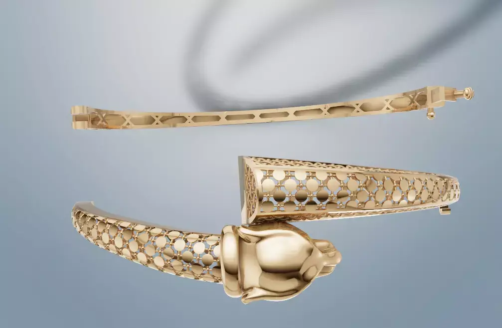 Luxury Tiger Head Bangle | Carved Pattern with Hidden Clasp | Elegant 3D Jewelry ModelThis luxury tiger head bangle is a bold statement of power and elegance. Featuring a finely sculpted tiger head with intricate carved circular patterns, it blends strength with sophistication. The bracelet is secured with a hidden clasp under the design, making it as practical as it is stylish.