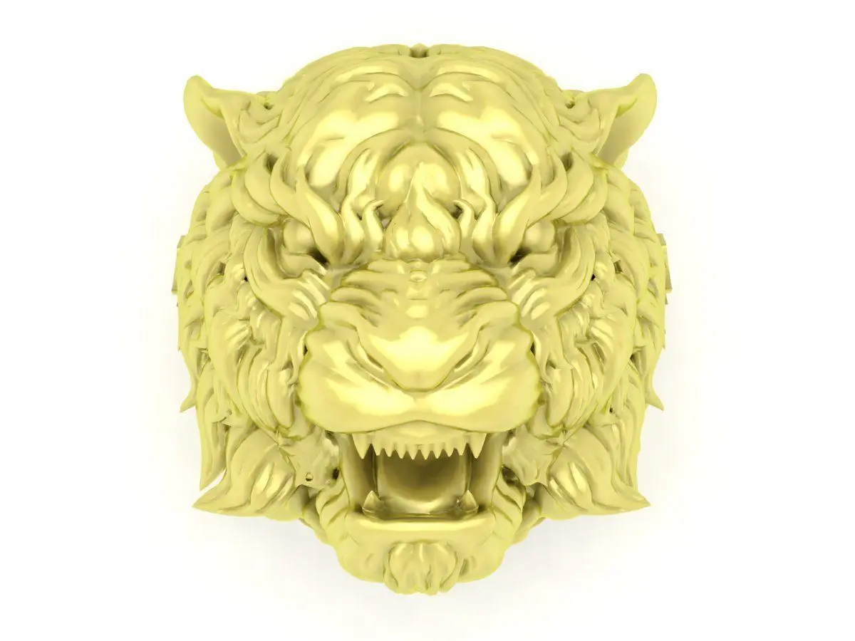 This luxury tiger head Feng Shui signet ring is a highly detailed 3D jewelry design symbolizing power, courage, and protection. The ring features a fully sculpted tiger head with expressive facial details, deep contours, and flowing mane textures, creating a bold and commanding visual presence.