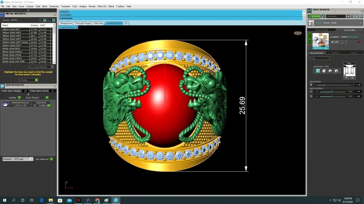 The ring structure is engineered with accurate gemstone settings, solid prongs, balanced thickness, and a smooth inner shank for comfortable long-term wear. The model includes technical preview images showing full measurements, stone dimensions, and weight simulation, making it ideal for production, quality checking, and manufacturing planning.