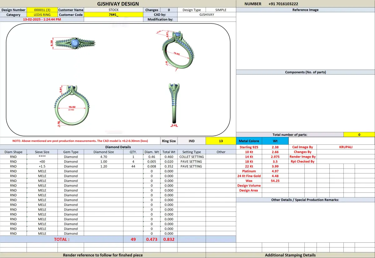 This CAD model is engineered with precise geometry for smooth casting, accurate stone placement, and excellent comfort. The design works perfectly in rose gold, white gold, yellow gold, or platinum and can be customized according to stone size, finger size, or metal preference.