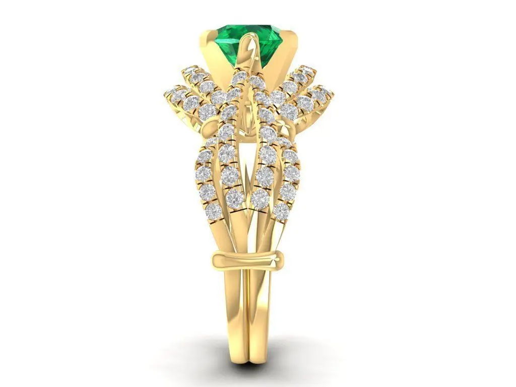 This luxury twisted halo gemstone ring features an exquisite design centered around a brilliant oval-cut stone, such as emerald or diamond. The centerpiece is embraced by a swirling double-halo arrangement of round accent stones, creating remarkable depth, sparkle, and visual movement. The band continues this flowing aesthetic with overlapping, pavé-set diamond paths that enhance both elegance and radiance. The under-gallery is beautifully sculpted, adding refinement and structural integrity while ensuring comfort on the finger.
