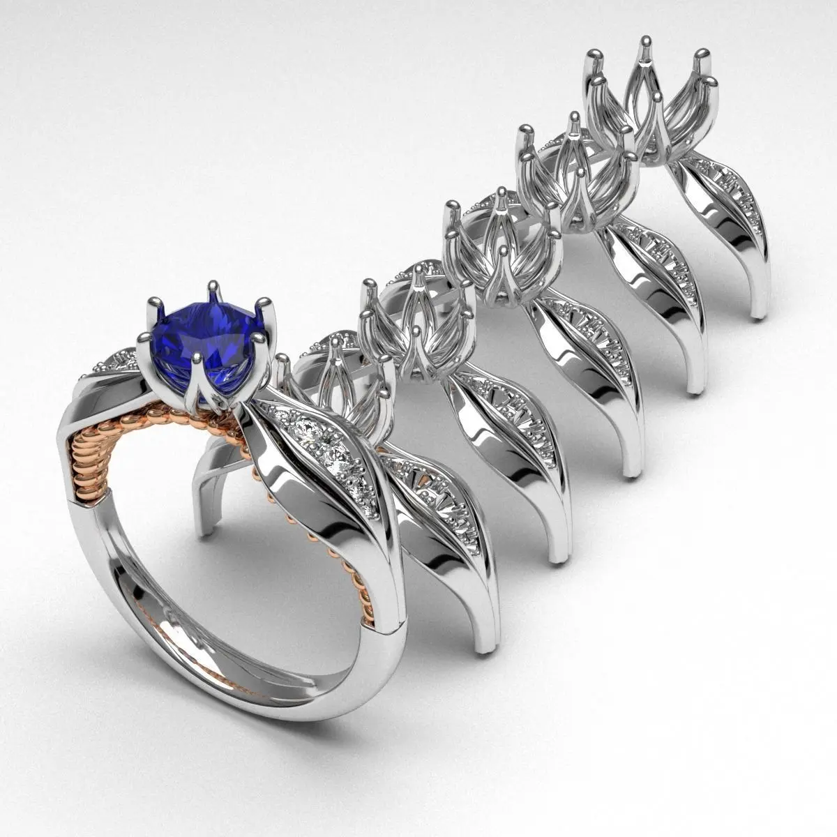 Model No:MD-43 Ring size: 17Central stone:5,5mm; 6mm; 6,5mm; 7mm; 7,5mm; 8mmside stones: 4x1,8mm; 4x0,9mm; 2x1,25mm