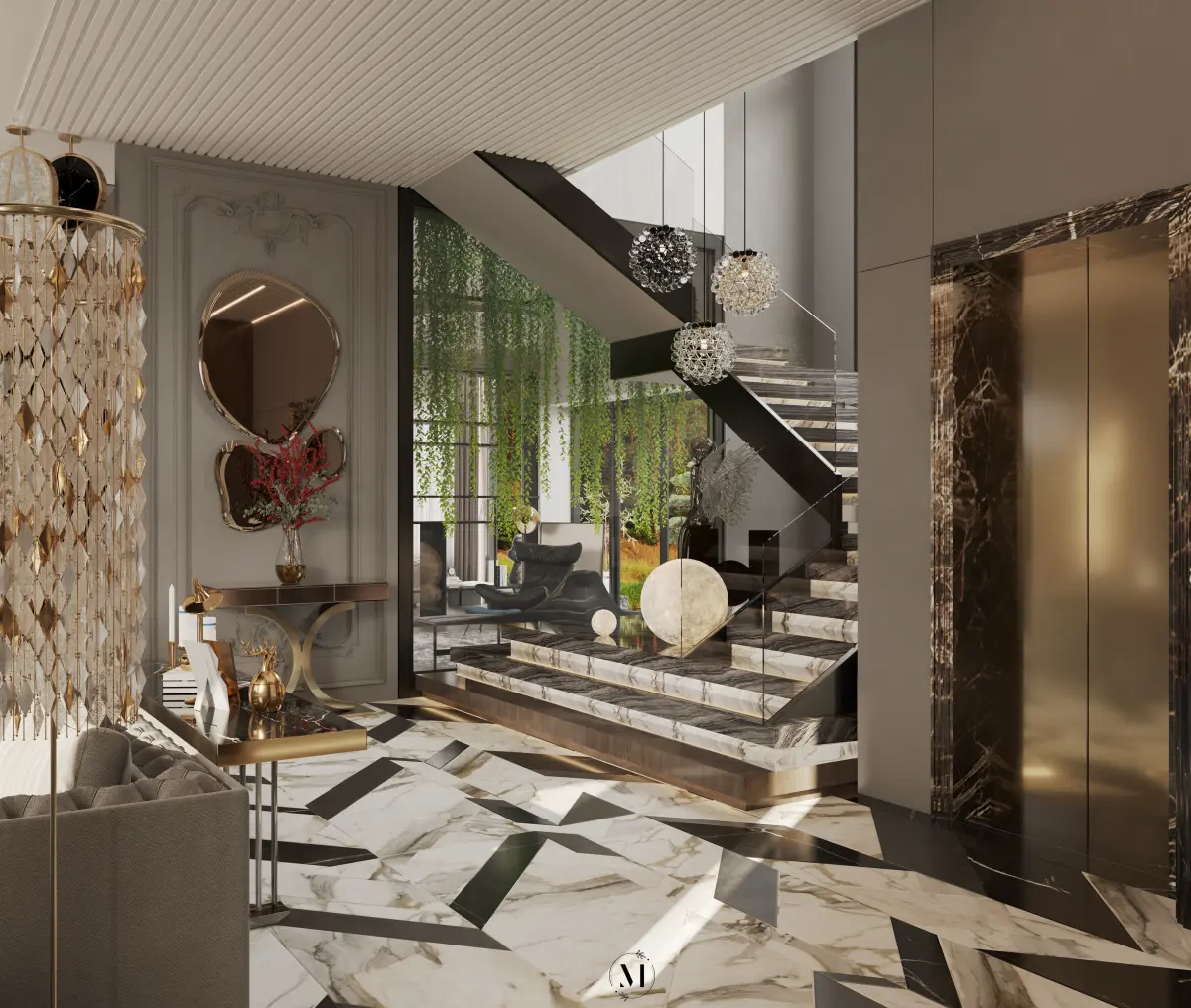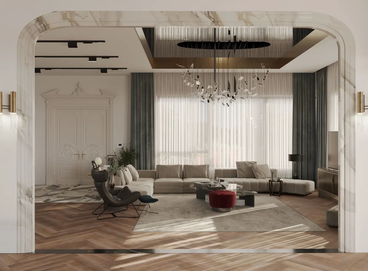 Luxury Villa Interior Scene | Living Room, Dining, Entrance, Staircase & Sitting Area | 3ds Max + Corona RendererThis luxurious interior 3D scene captures the grandeur and elegance of a high-end villa, combining classic architectural elements with modern finishes. The open-plan design flows seamlessly from the entrance hall into the living and dining areas, and a feature staircase ties the levels together. Perfectly staged lighting and rich materials create a warm yet opulent atmosphere ideal for architectural visualization, virtual staging, and portfolio use.Modeled in 3ds Max + Corona RendererHigh-quality materials and texturesReal-scale, fully detailed layoutOrganized layers, grouped furniture, and optimized lighting setupRender-ready with pre-positioned cameras Interior Highlights: Entrance AreaDouble-height ceiling or statement chandelierConsole table with mirror or art pieceMarble flooring or polished stoneDecorative molding or wall paneling Living RoomLarge L-shaped or modular sofaCoffee table (wood, marble, or glass)Media wall or built-in shelvesAccent rug, curtains, and plantsWarm layered lighting (floor lamps, sconces) Dining Area6–10 seater luxury dining tableUpholstered chairs with metal or wooden framesPendant or chandelier lighting aboveFeature wall, mirror, or window treatment StaircaseCentral or corner staircase with luxury railing (glass, wood, or iron)Under-stair storage or art displayHighlighted with soft lighting or skylight Sitting AreaCozy reading nook or secondary loungeArmchairs, ottoman, side tablesDecorative shelves, wall art, and lighting accentsColor Palette:Neutral base tones: white, cream, taupe , black , goldAccents: brushed gold, deep wood, black or navyMaterials: Marble, velvet, linen, wood, brassPerfect For:High-end villa and residential visualizationsLuxury furniture and lighting showcasesArchitecture and design portfoliosReal estate marketing CGIInterior moodboard and style guides