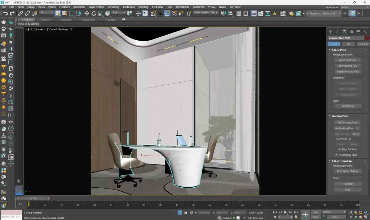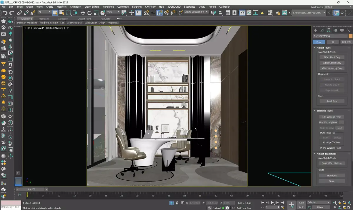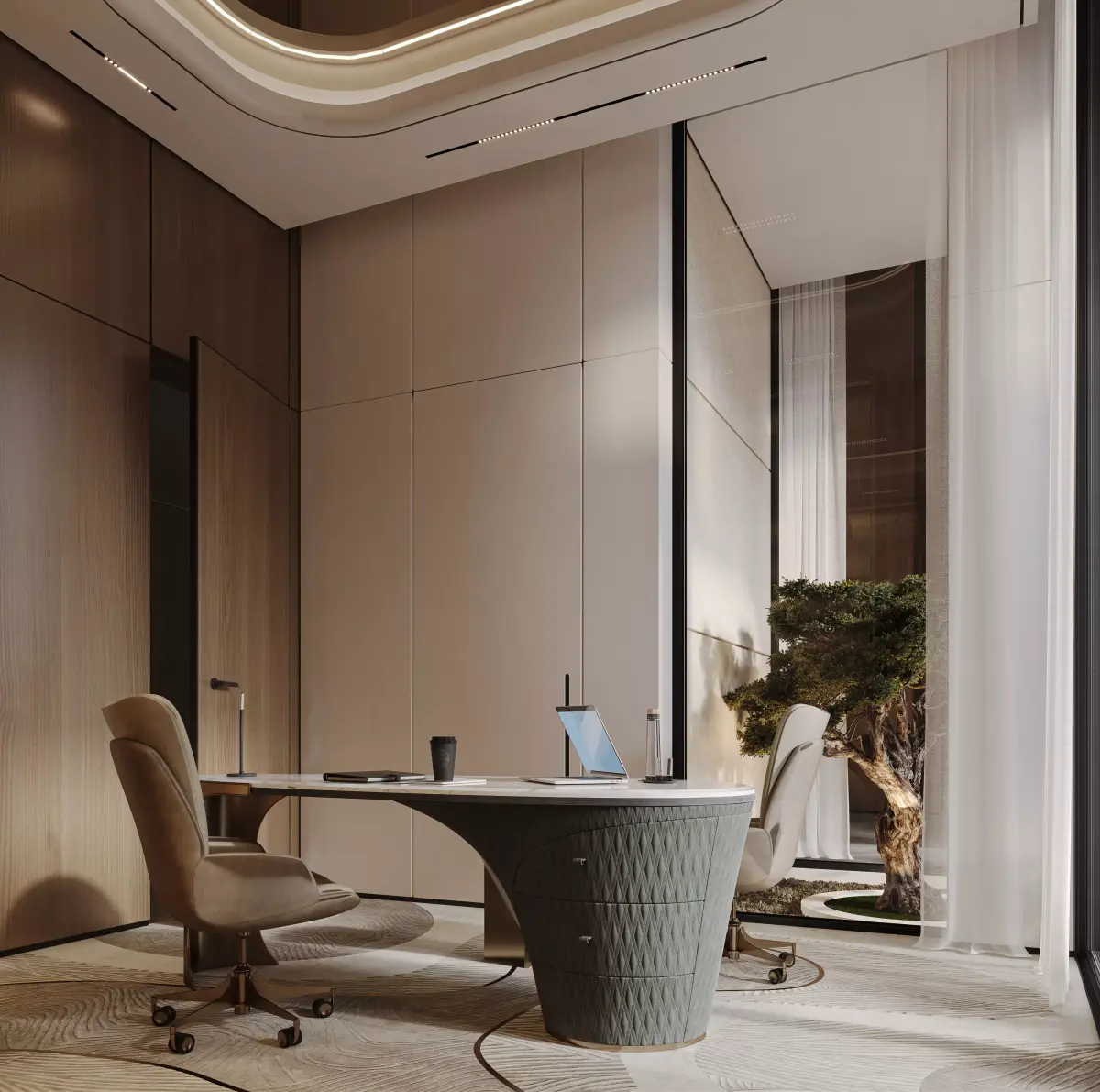 A luxury office interior located in a high-end villa, designed for executives or private home use. The space features premium furniture, rich wood finishes, and elegant lighting. Modeled in 3ds Max and rendered with Corona. Ideal for architectural visualization, animations, and presentations.