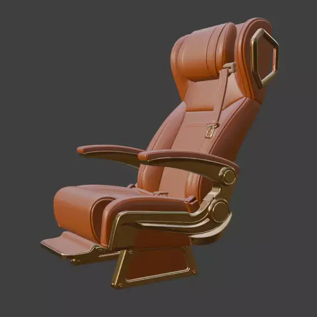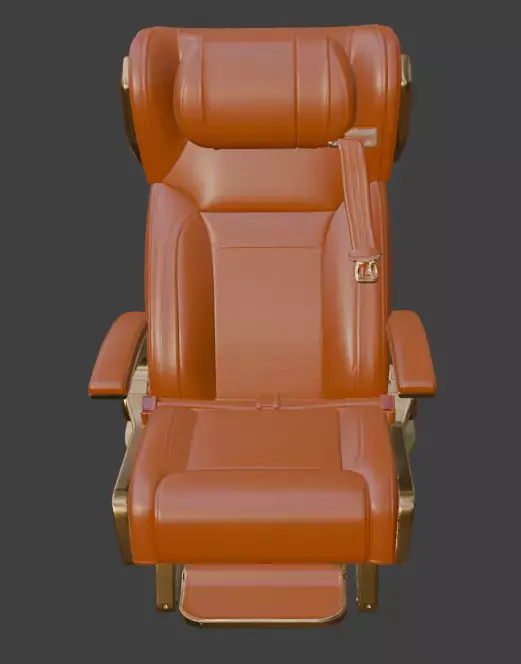 Highly detailed premium luxury VIP aircraft seat 3D model with rich red quilted leather upholstery and polished gold metal accents. Perfect for private jet interiors first-class airplane cabins luxury yacht scenes high-end visualizations and cinematic renders. Clean topology non-overlapping UVs PBR materials ready for V-Ray Corona Arnold Redshift Octane and all major render engines.