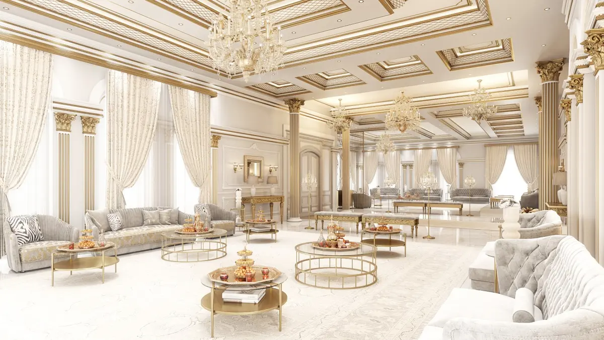 - The model is a luxurious, fully furnished VIP lounge and living room.