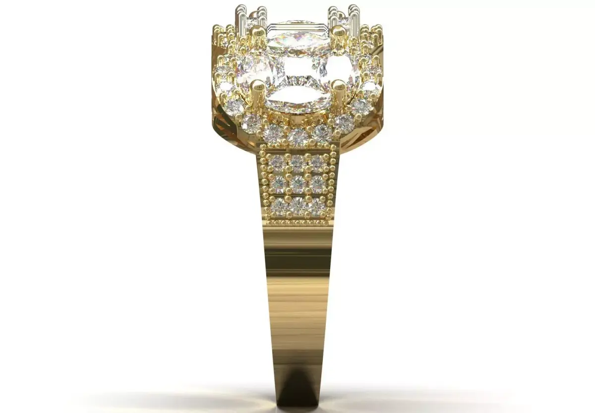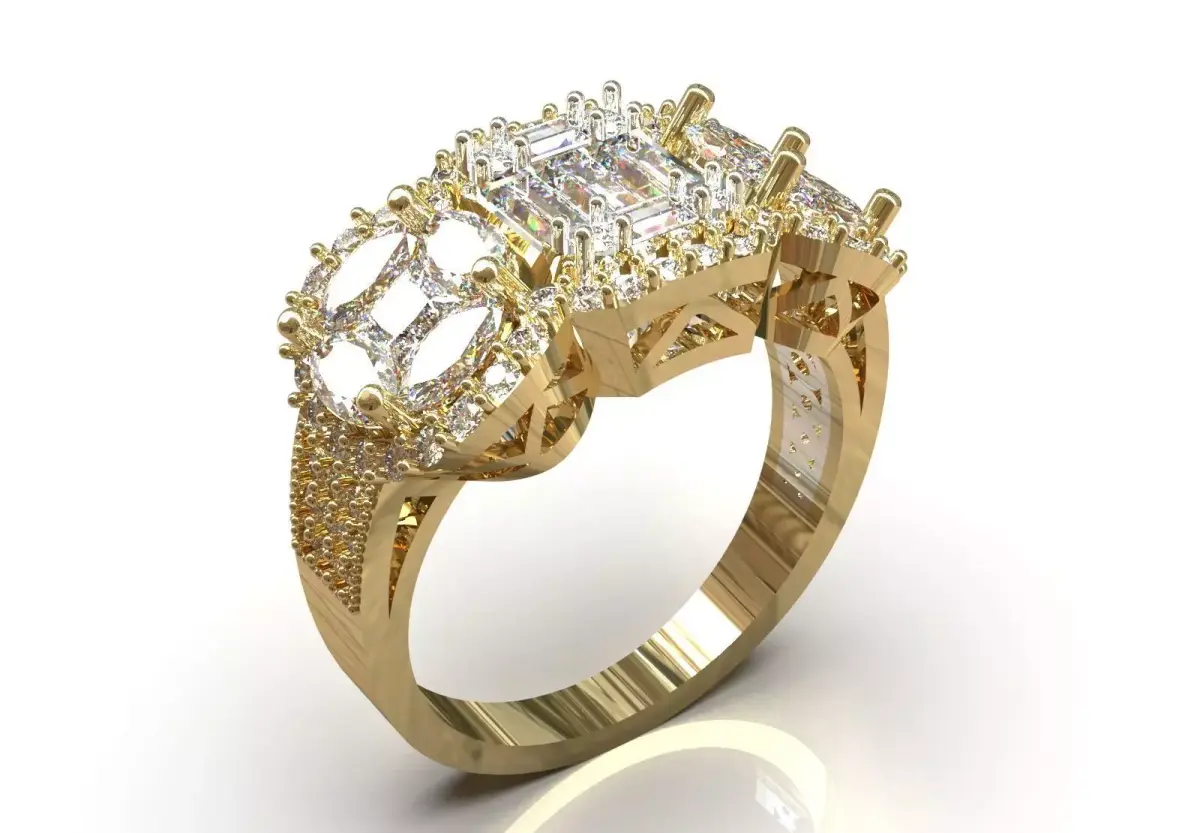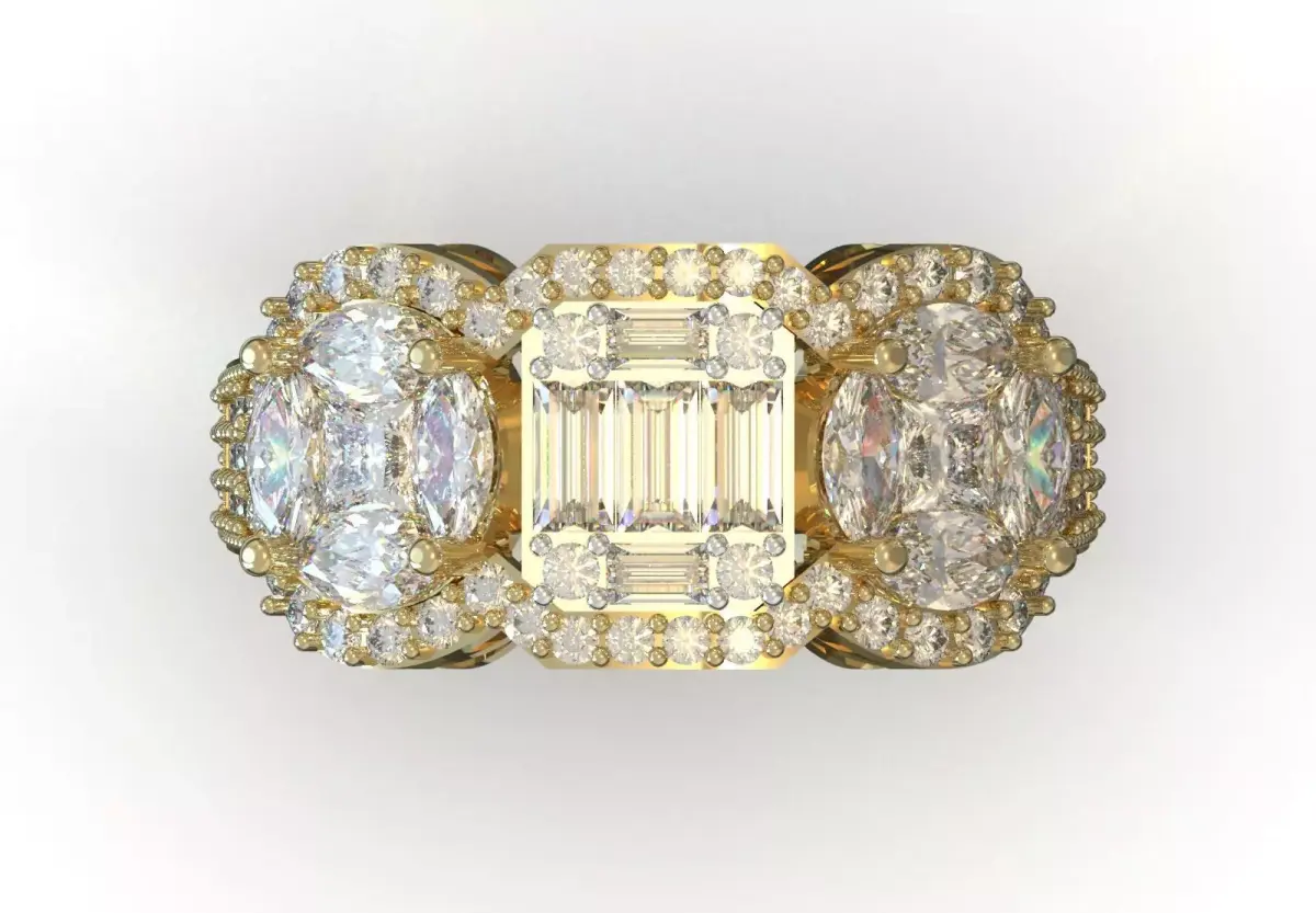 - Triple Design: This ring has three main and large sections at its top: a rectangular center and two oval sides.
