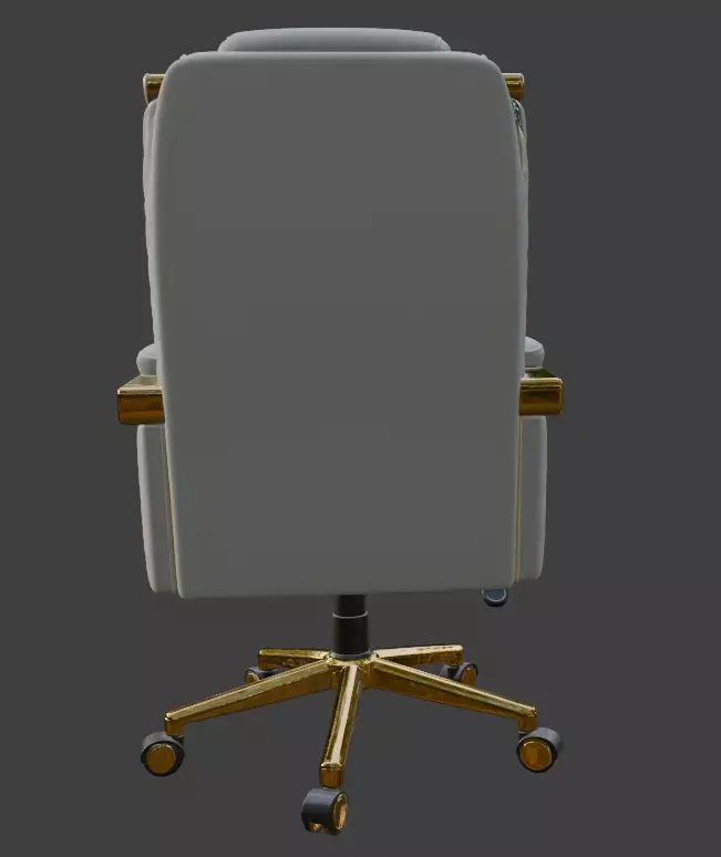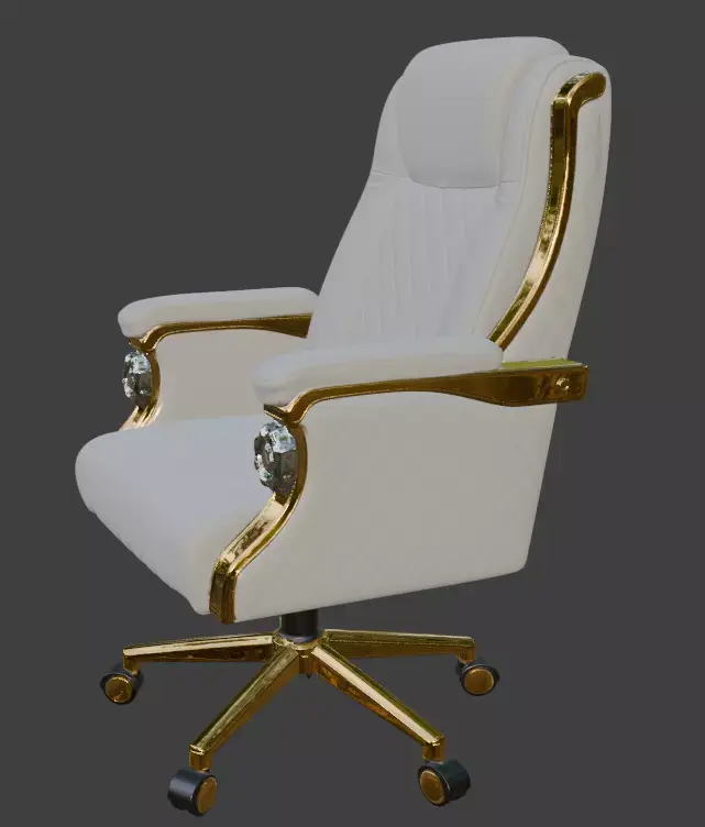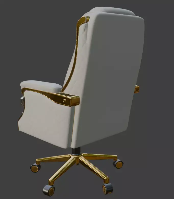 Ultra-premium 3D model of a luxurious executive office chair featuring white diamond-stitched leather upholstery, real 24k gold-plated accents, lion-head armrest details, and a polished gold base. Designed for high-end office interiors, CEO suites, luxury penthouse visualizations, film close-ups, and opulent architectural renders.Built with perfect clean topology, fully unwrapped non-overlapping UVs, and studio-quality 4K PBR textures (Base Color, Roughness, Metallic, Normal, Height). Materials are carefully crafted for realistic leather shine, brushed and polished gold reflections, and subtle fabric details.