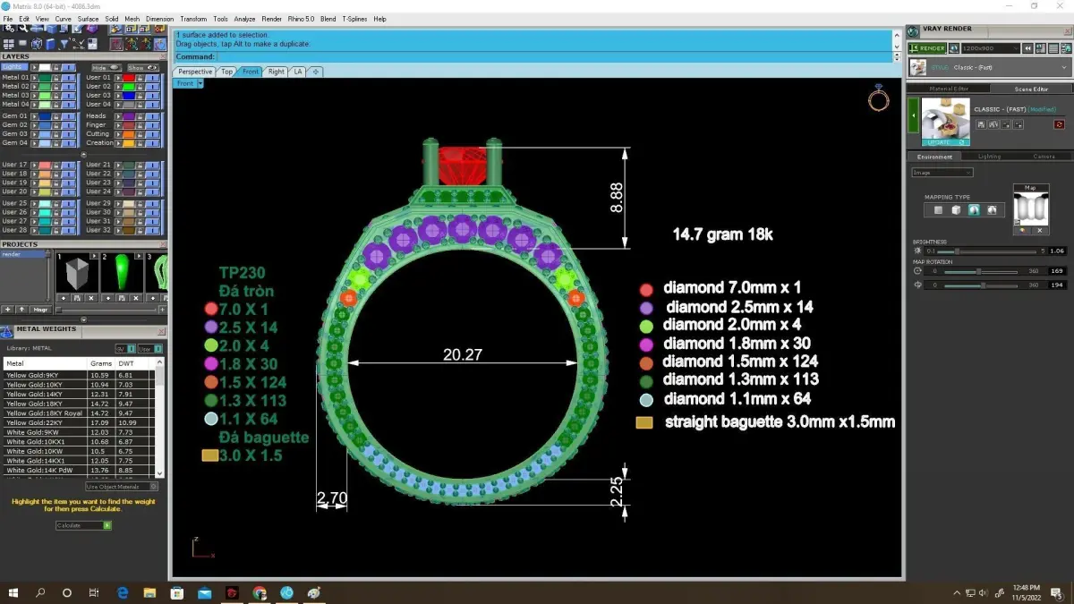 This 3D jewelry model is fully prepared for CNC machining, 3D printing, and casting production. All preview images clearly display dimensions, stone settings, and technical details to support accurate manufacturing and stone placement.