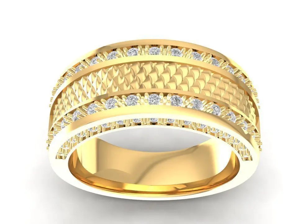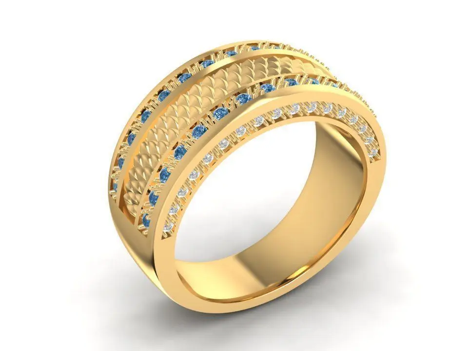 This luxury women’s band ring features multiple rows of gemstones set in parallel across the entire surface, creating a dazzling and elegant look. With its medium-to-wide band design, the ring is both bold and sophisticated, perfect for those who love jewelry that shines from every angle.