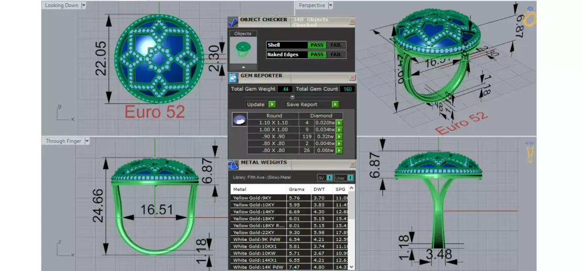 Diamond Size and Carat Weight: 160 Brilliant Cut Diamonds. Total Diamond Weight 0.44 Carats. Check the Diamond Chart attached in the image.