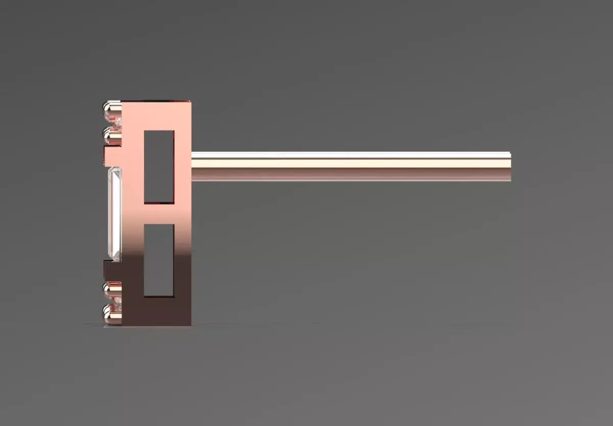 These JE0110 stud earrings have a special and eye-catching effect with their geometric and modern design. The main body of these earrings is made of rose gold with elegance and in each earring, four pieces of baguette-cut diamonds are placed in the center.