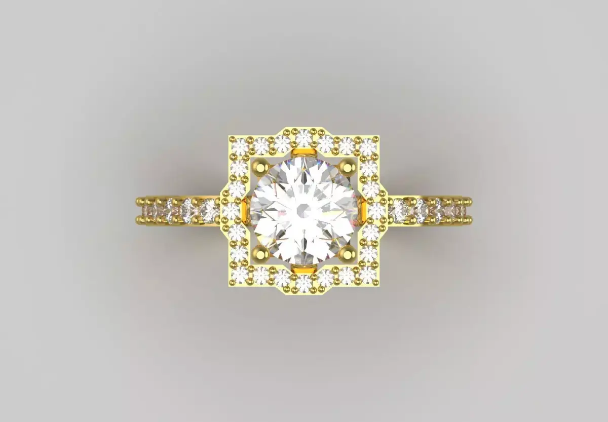 Luxury Yellow Gold Engagement Ring with Square Halo Model SR0091