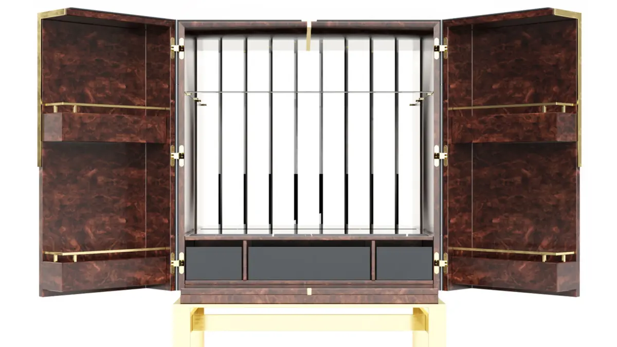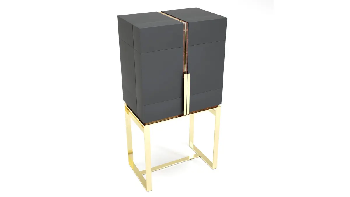 With geometric lines and an elegant shape, the Lloyd Bar Cabinet provides not only a classic storage option but an accent piece that will become the focal point of your interiors. Made with quality materials such as gold-plated brass, this piece will grant a cosmopolitan touch to a winery or dining room.
