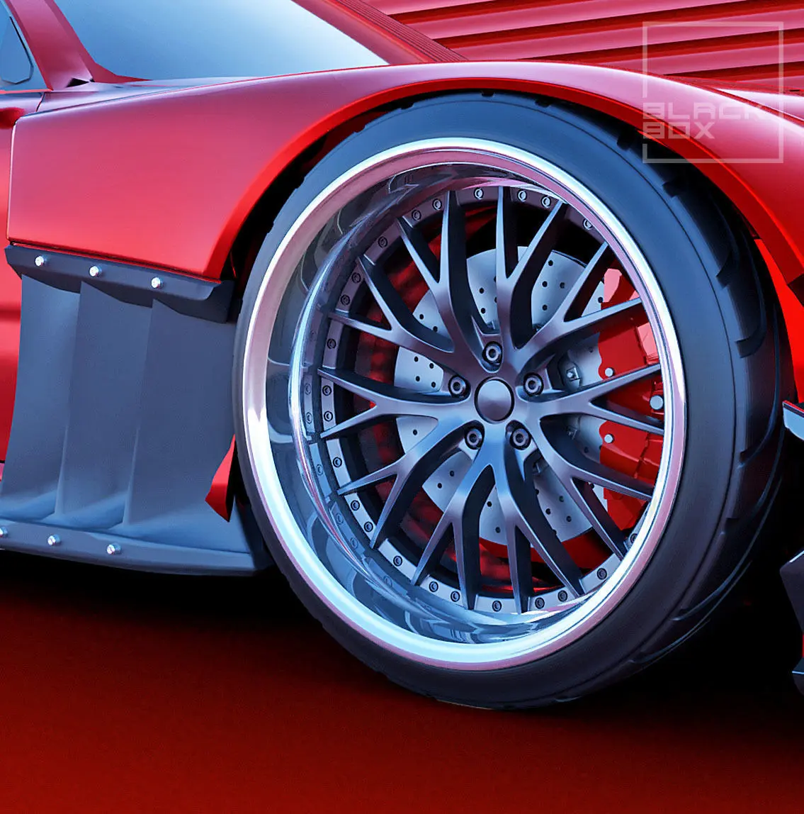 Front and rear wheel and tires with different widths3 OffsetsSeparated spokesBrakes front and rearReady to print!Recommended for 1/43 1/24 1/18 1/10..... scales.Please note the axle width and attachment method on your car model.