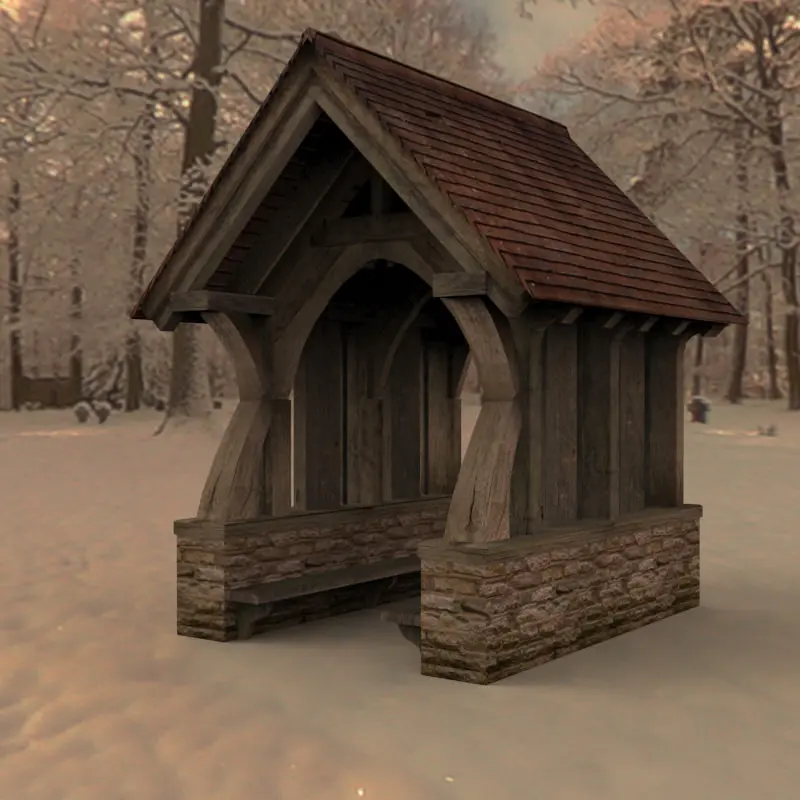 Depending on the region, sometimes a funeral service with a Priest was held and started in the lychgate before the actual church service. Afterwards, sometimes the pall-bearers could also rest on the lychgate before carrying the corpse or coffin down the lych way, the path along which a corpse was carried to burial. On occsaions, ceremonies such as lyke-wake (a night watch over a corpse) would be held.