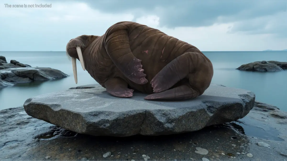 This detailed model showcases the walrus's textured skin, flippers, and prominent tusks. The design emphasizes realistic anatomy and lifelike textures, making it suitable for educational, creative, and entertainment purposes. The model can be utilized in natural history exhibits, animated films, or interactive educational apps.