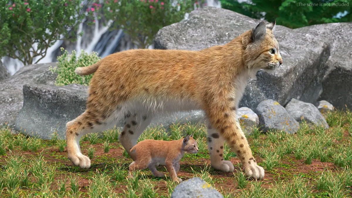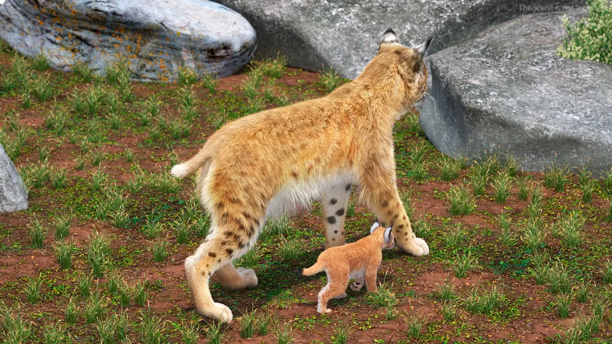 Lynx Mother and Cub Walking Fur is a 3d model of a lynx and its cub, showcasing the majestic feline in a natural, lifelike pose.