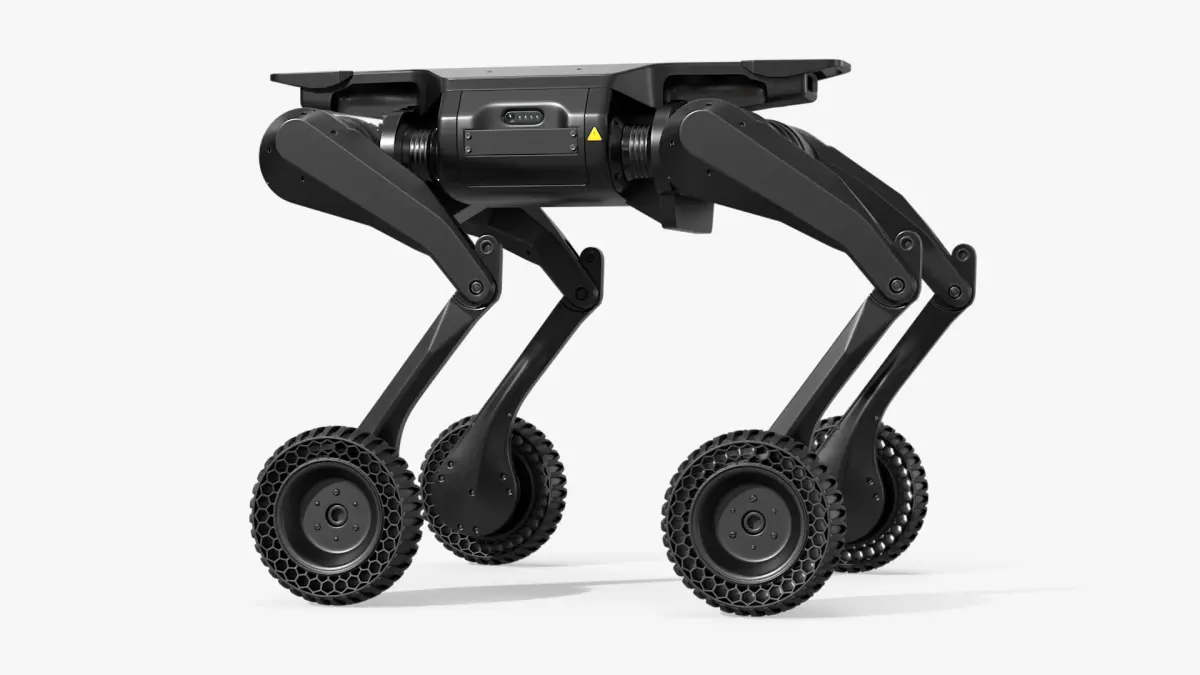 This robot features a quadrupedal design with wheels on each leg, allowing it to traverse different terrains efficiently. Its modular structure enables enhanced flexibility and control, suited for tasks that require maneuverability. The lightweight and durable body ensures long-lasting performance in diverse environments.