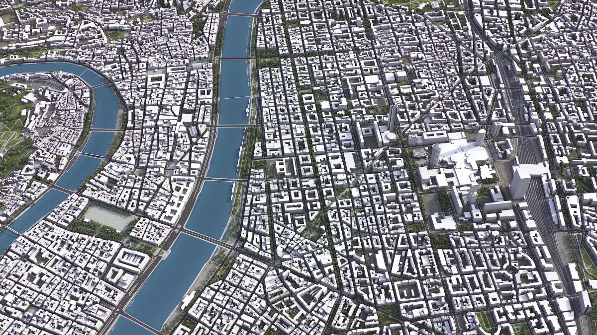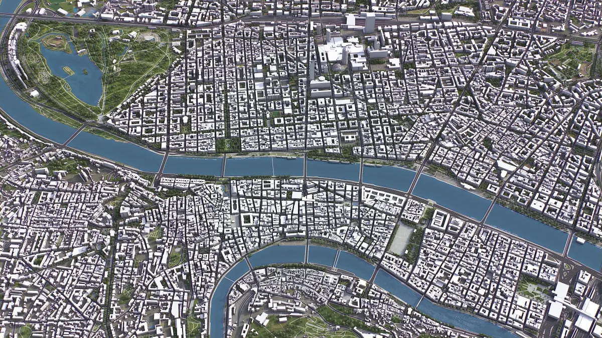 - Full city extents up to 100 x 100 km — or crop to an area of interest for better format compability and scene performance