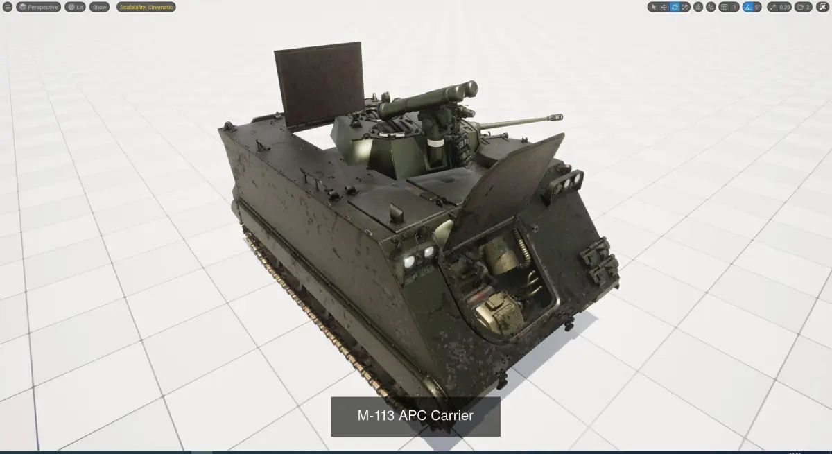 Animatable M-113 Carrier Collection is created in 3ds max2022, rendered in Unreal Engine 5.1.