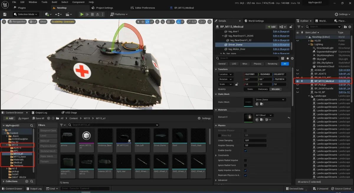 Animatable M-113 Medical Carrier(Armored Medical Evacuation Vehicle) is created in 3ds max2022, rendered in Unreal Engine 5.1.