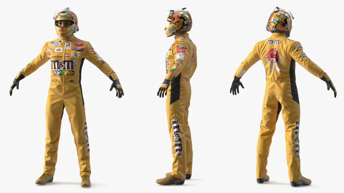 M and Ms Racing NASCAR Suit with Helmet Gloves and Boots Yellow is a high quality, photo real 3d model that will enhance detail and realism to any of your rendering projects. The model has a fully textured, detailed design that allows for close-up renders, and was originally modeled in 3ds Max 2020 and rendered with V-Ray. Renders have no postprocessing!
