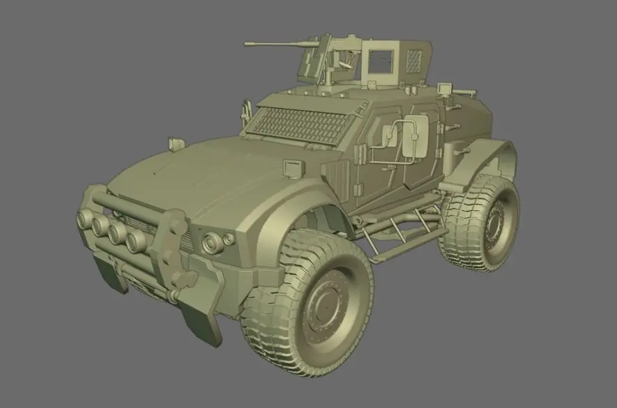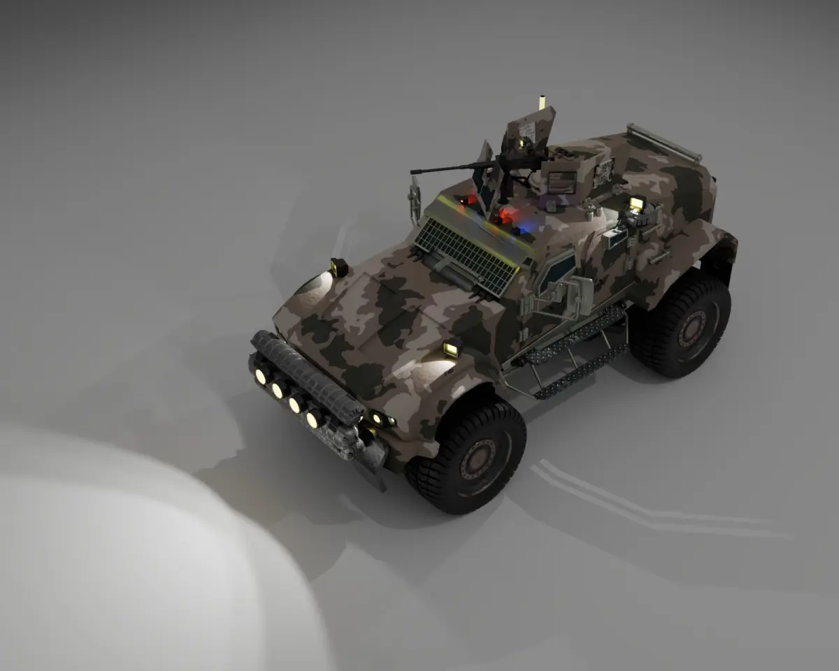 And I added military accessories to the Oshkosh M-ATV model I made last time.And this is the result.