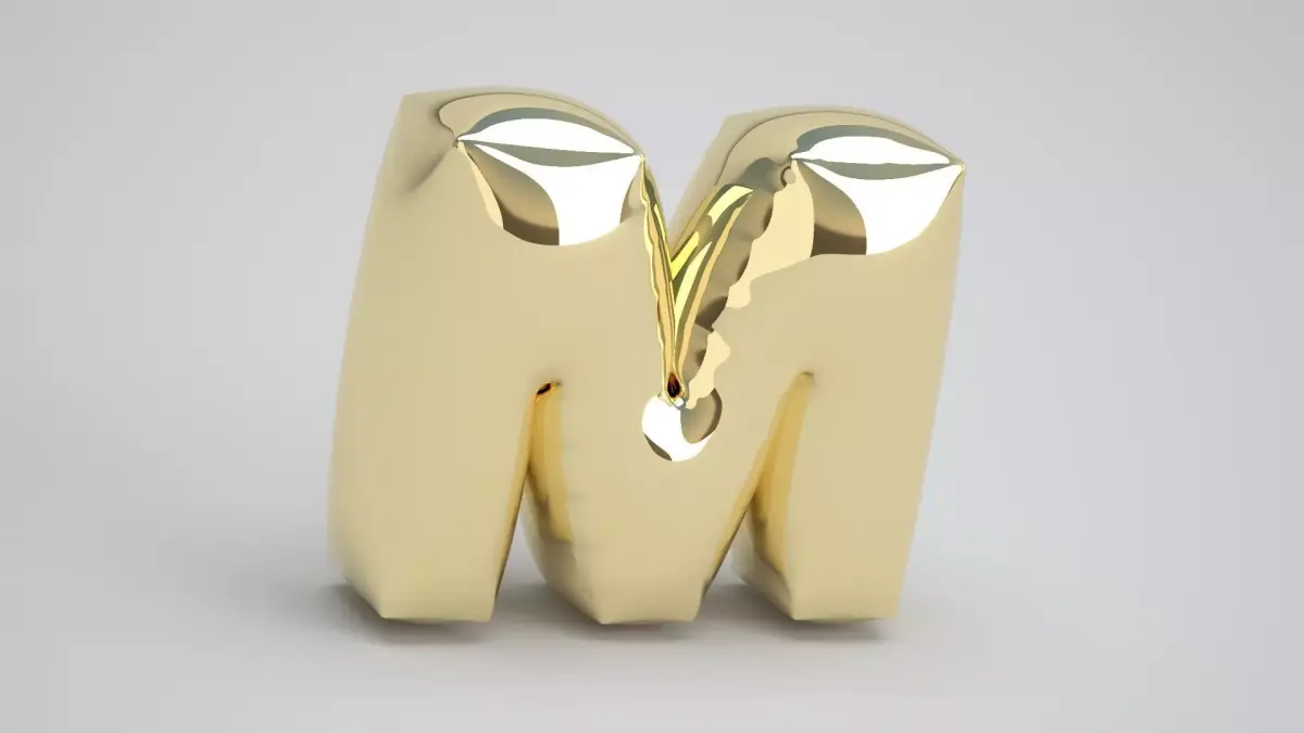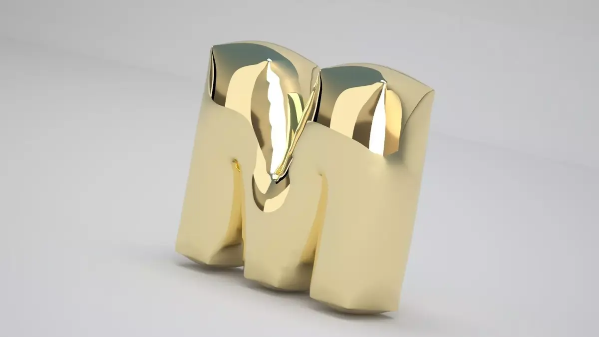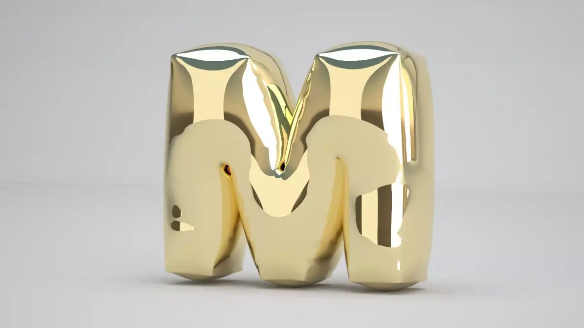 Realistic 3D Model OF Balloon M Alphabet Gold