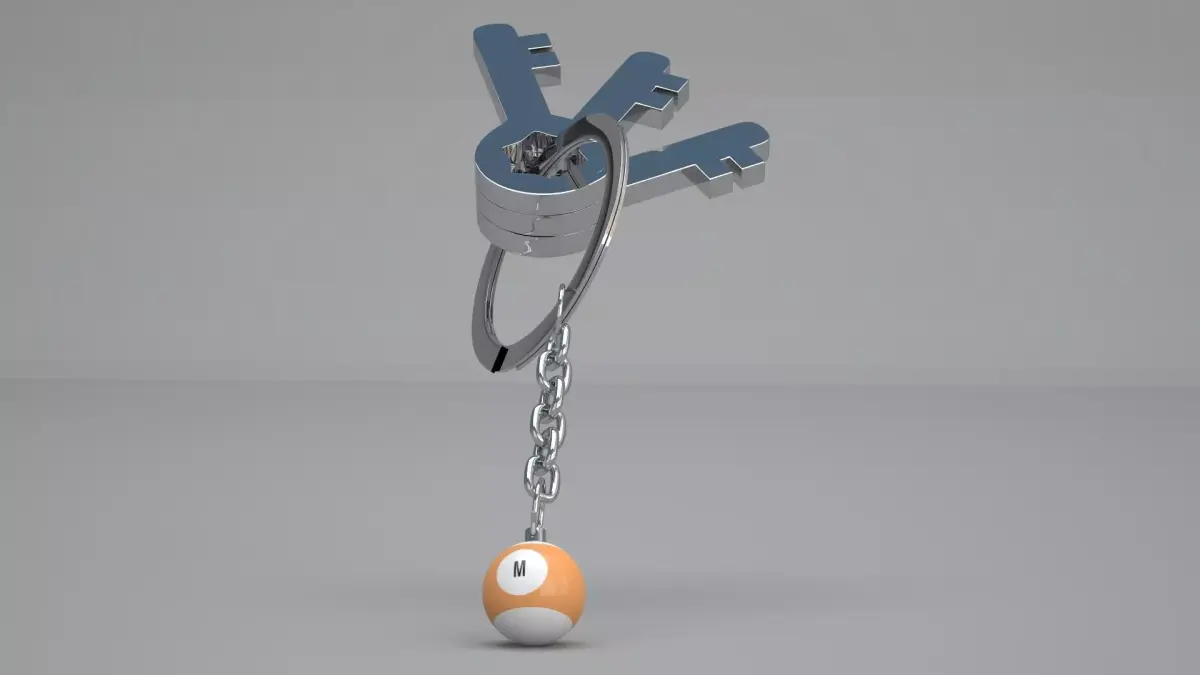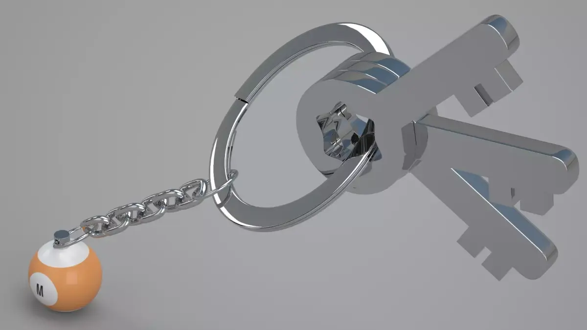 Realistic 3D Model OF M Pool Snooker Ball with Keychain