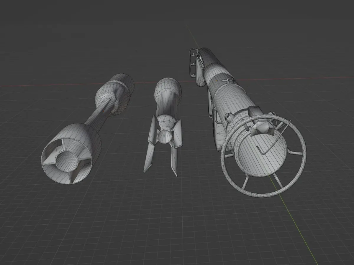 this model is composed of 7758 polygonal mesh vertices, it is separated into component parts to allow a better work, M6a1 and m6a3 rokets.
