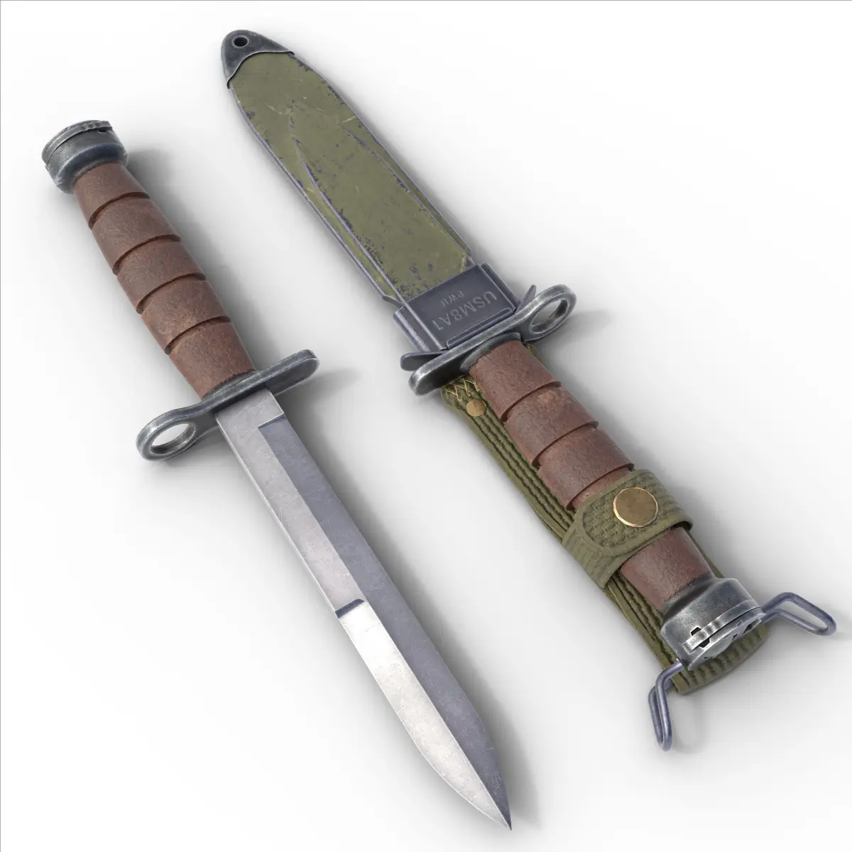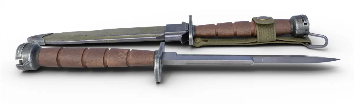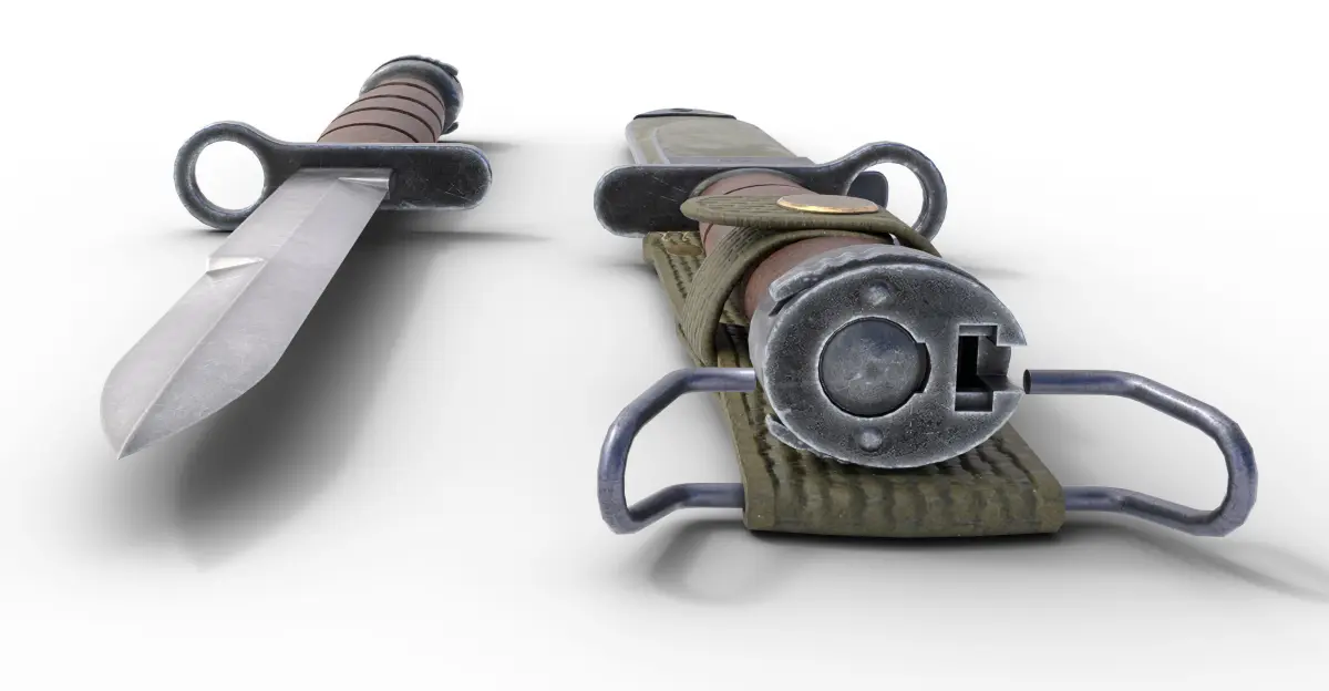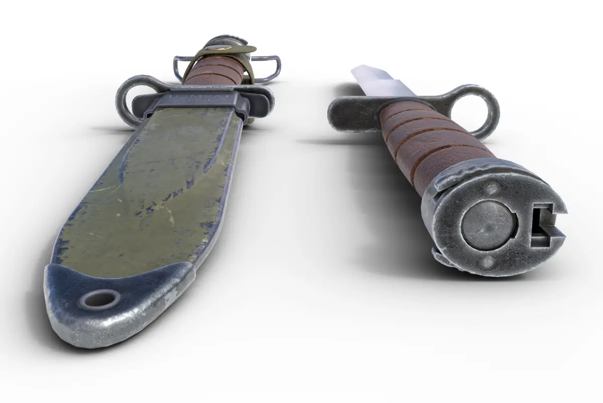 LP model of 1943 style M1 bayonet with high texture resolution. Feel free to use it in your project or or as an in-game asset.Can be used as game asset or render prop in your scene.