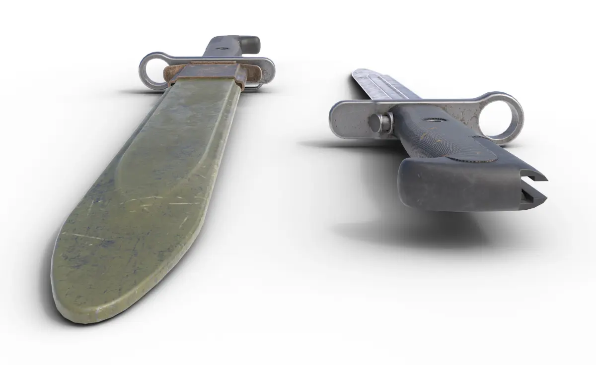 LP model of M1 garand bayonet with high texture resolution. Feel free to use it in your project or or as an in-game asset.Can be used as game asset or render prop in your scene.