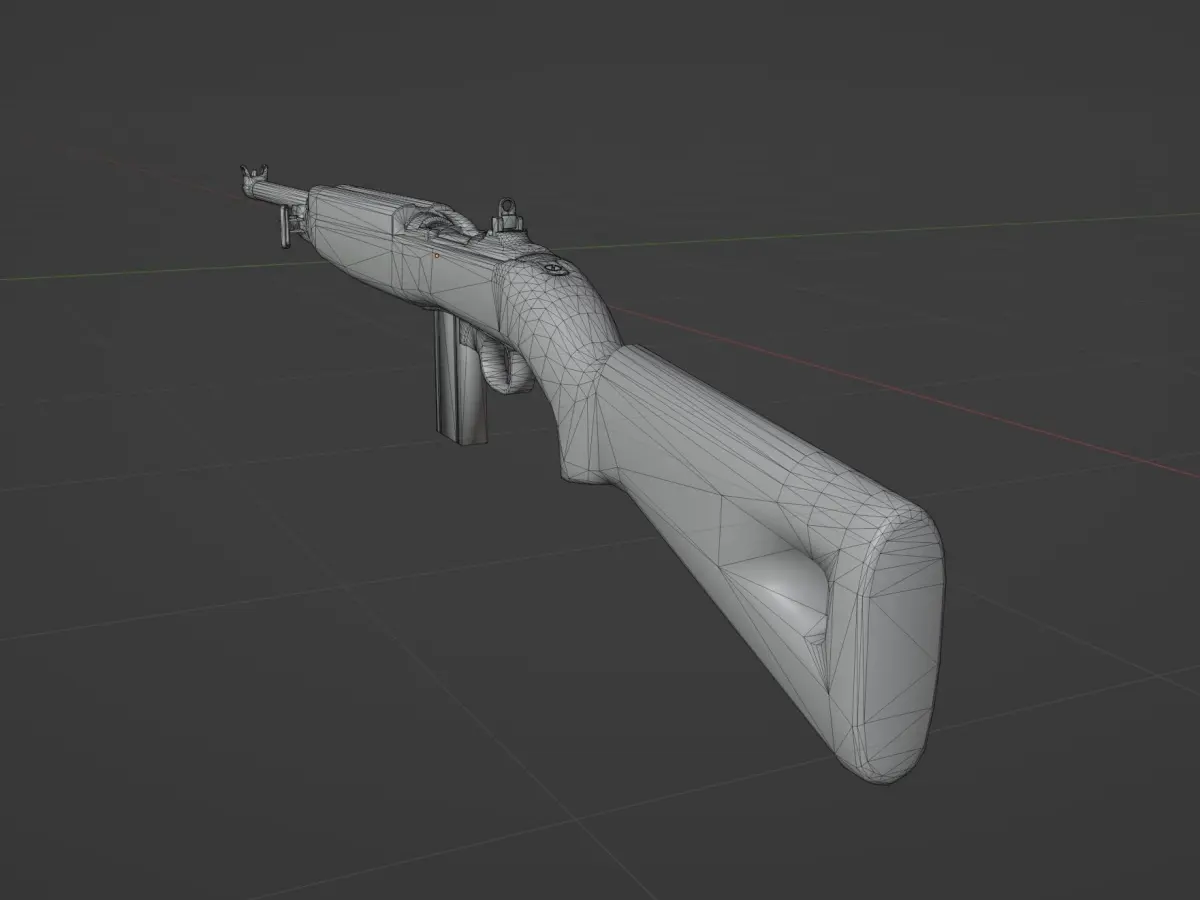this model is composed of 4200 vertices divided into polygonal mesh.the model is separated into component parts, there is the selector for the M2 carbine, remove it if you want to get the M1 carbine, it is the only difference.