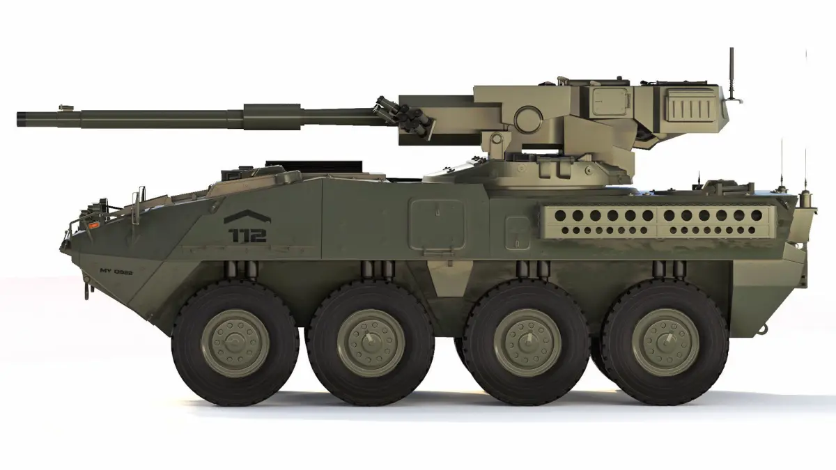 The M1128 Mobile Gun System (MGS) is an eight-wheeled armored car of the Stryker armored fighting vehicle family, mounting a 105 mm tank gun, based on the Canadian LAV III light-armored vehicle manufactured by General Dynamics Land Systems for the U.S. Army.