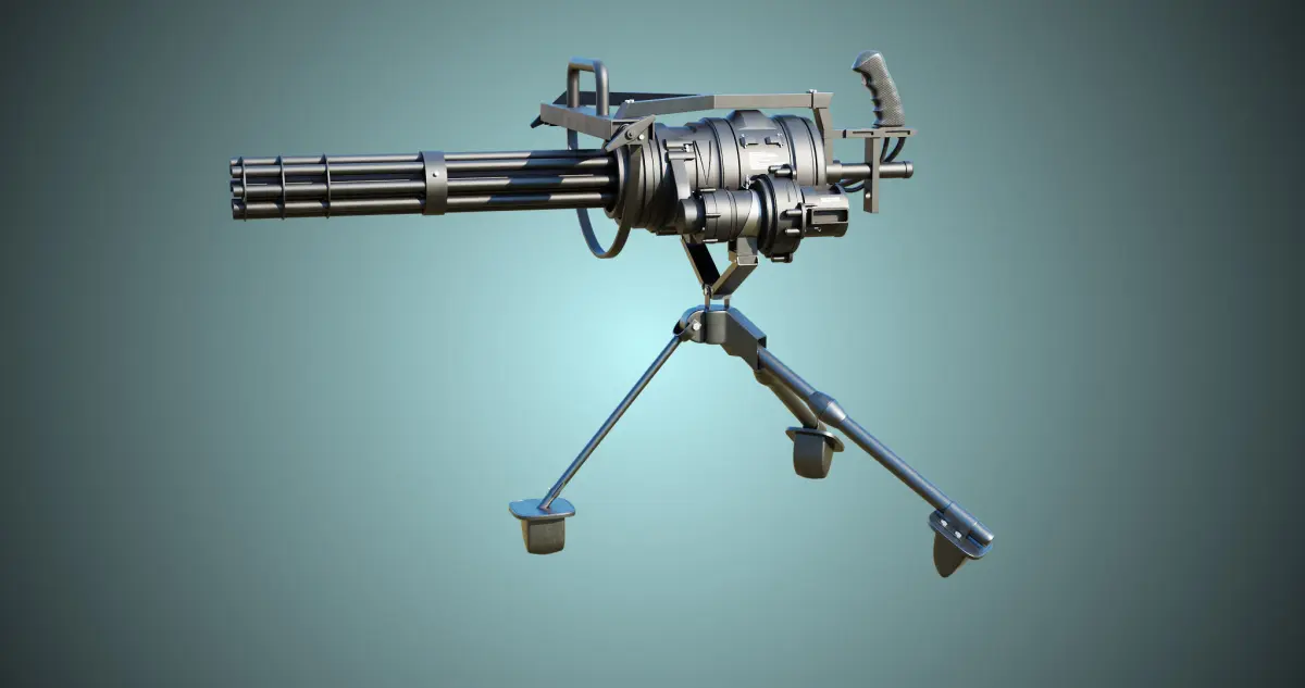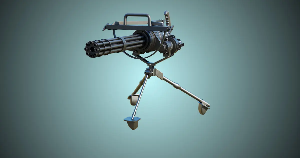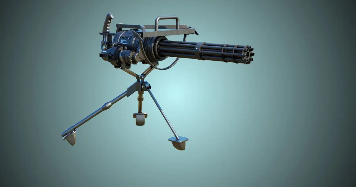 Photorealistic 3D model of M134 Minigun and Stand, This Collection model is suitable for any visual production - broadcast, high-res film close-ups, advertising, games, design visualization, forensic presentation, etc.