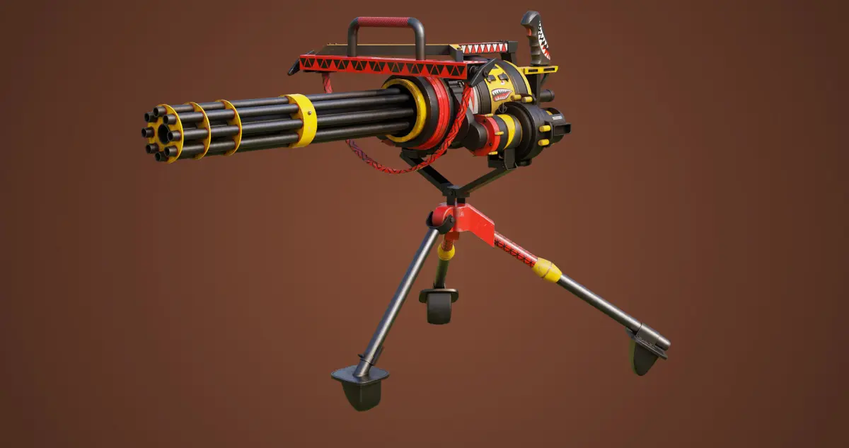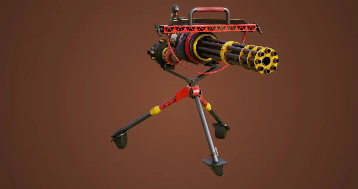 Photorealistic 3D model of M134 Mini Gun Red Shark Skin with Stand, This Collection model is suitable for any visual production - broadcast, high-res film close-ups, advertising, games, design visualization, forensic presentation, etc.