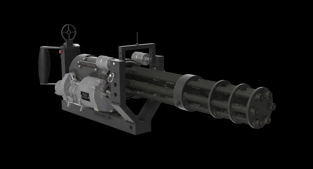 This M134 Minigun With Mounting Bracket Dirt is a high quality, photo real model that will enhance detail and realism to any of your rendering projects. File units - cm. The model has a fully textured, detailed design that allows for close-up renders, and was originally modeled in 3ds Max 2014 and rendered with V-Ray.