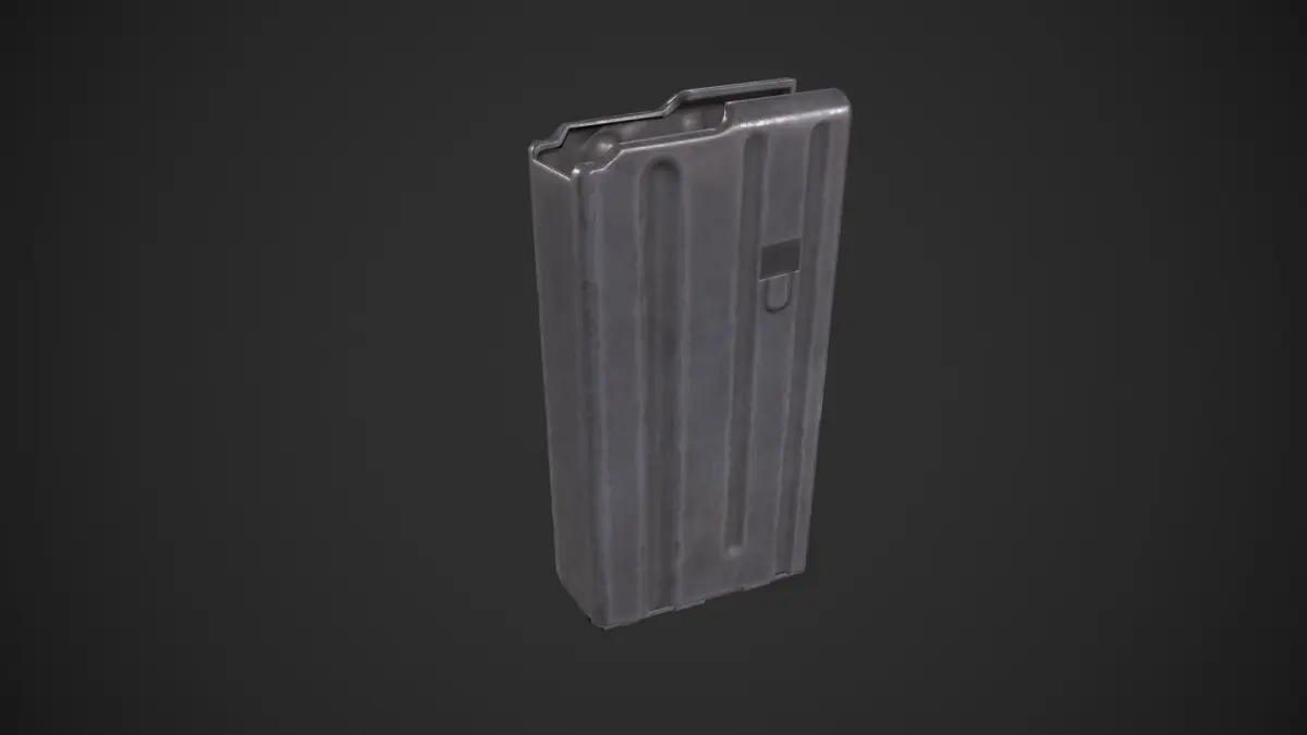 Game-ready M14 20 Rounds Magazine asset, with PBR textures included in the files. This has 320 polys (570 tris) and 287 vertices.