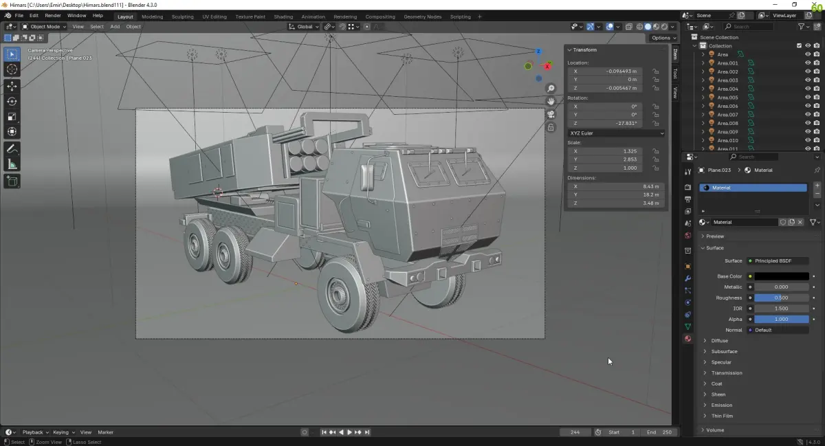 The launcher can be transported by C-17 Globemaster, C-5 Galaxy, and Lockheed C-130 Hercules aircraft.[10] The FMTV truck that transports the HIMARS was initially produced by Armor Holdings Aerospace and Defense Group Tactical Vehicle Systems Division, the original equipment manufacturer of the FMTV. It was produced by the Oshkosh Corporation from 2010 to 2017.[11]