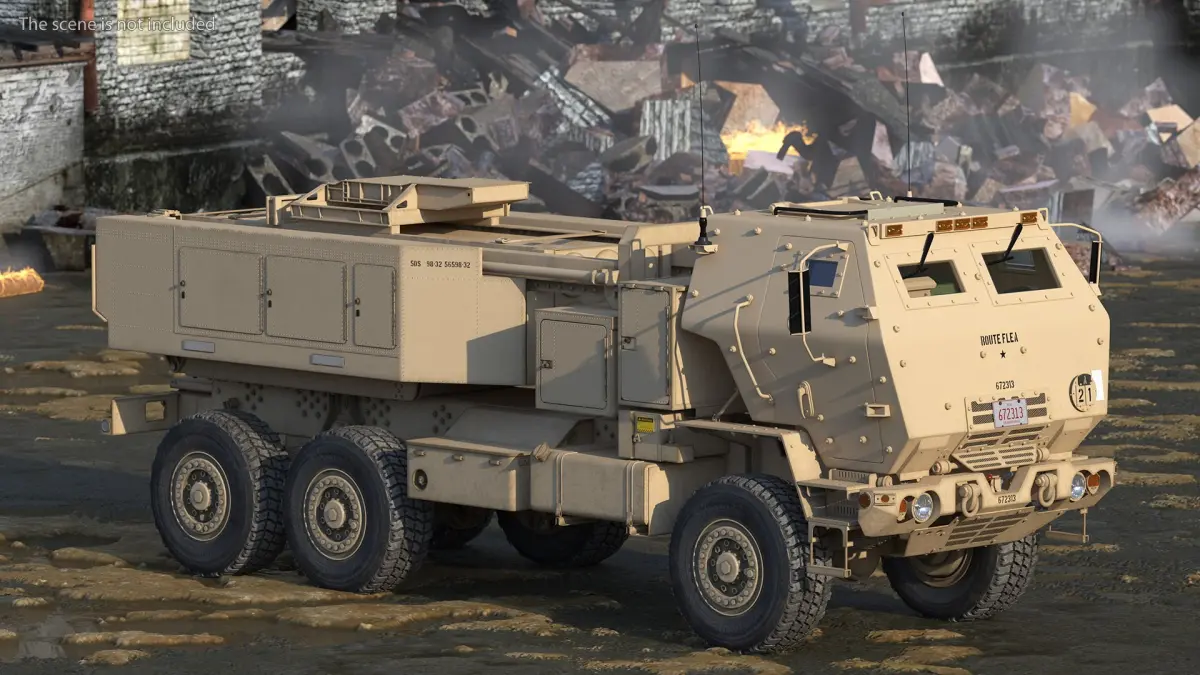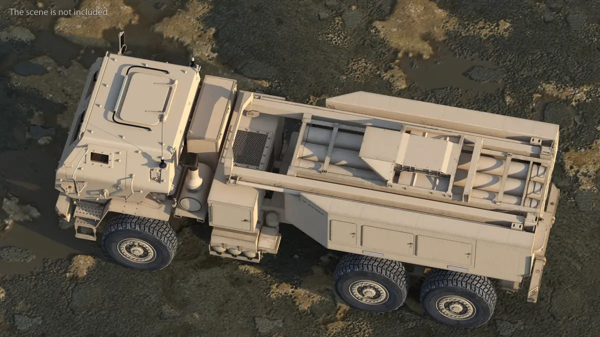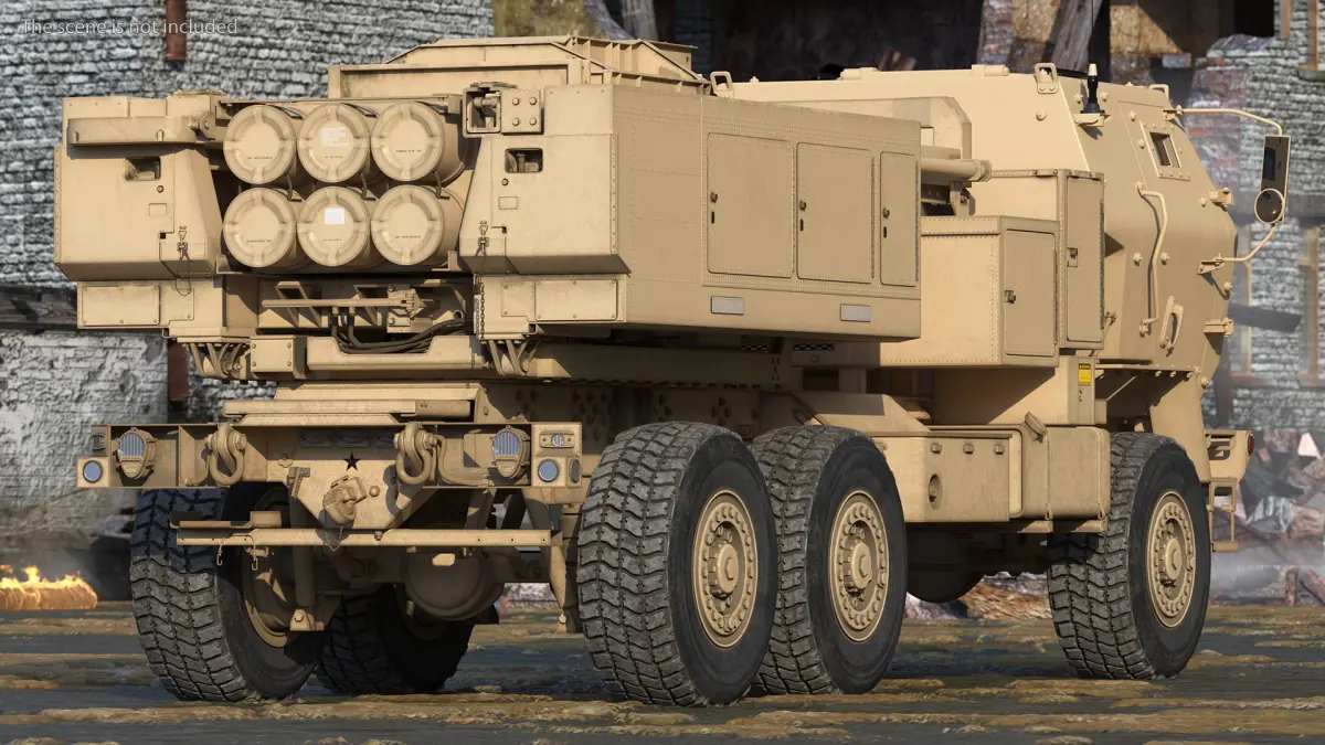 M142 HIMARS Multiple Rocket Launcher Desert is a three-dimensional model of an American military light multiple rocket launcher.