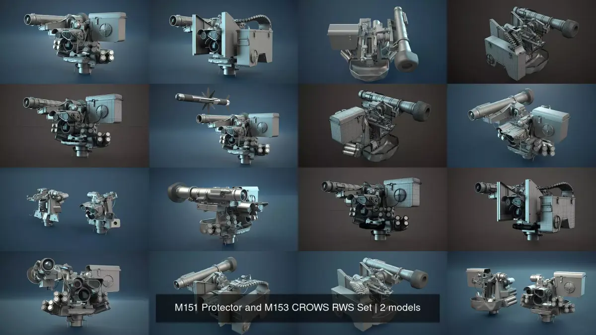This set includes two remote weapon stations M151 Protector and M153 CROWS equipped with an FGM-148 Javelin. A main weapon like a machine gun is not included.