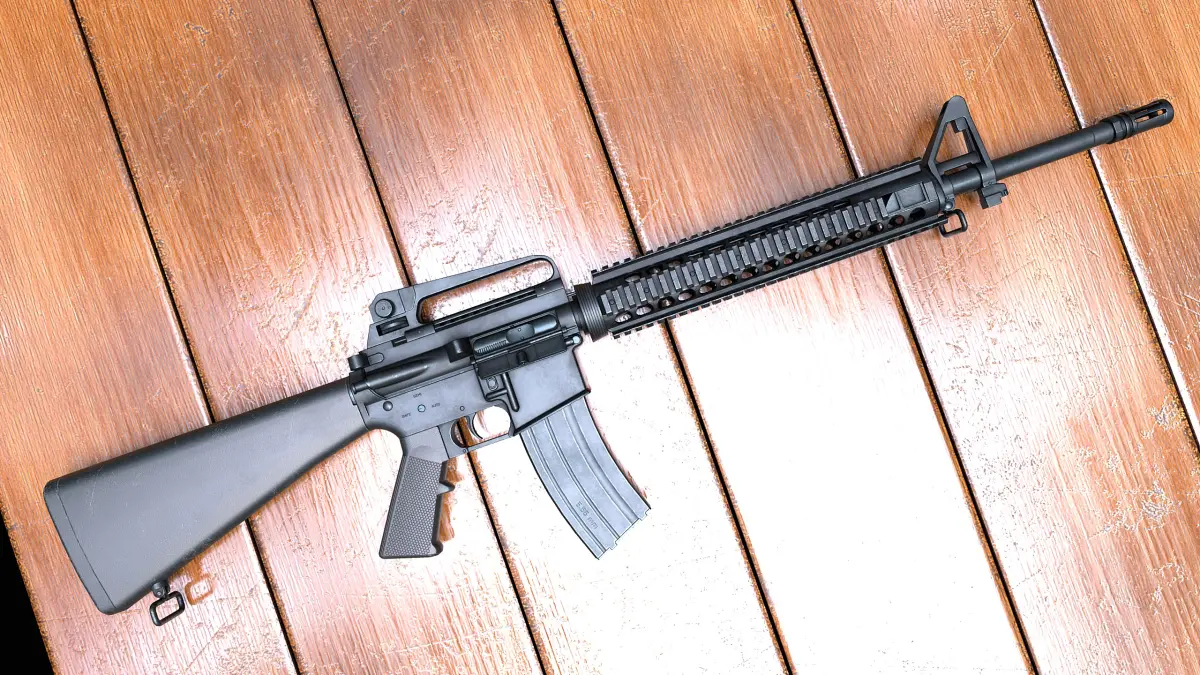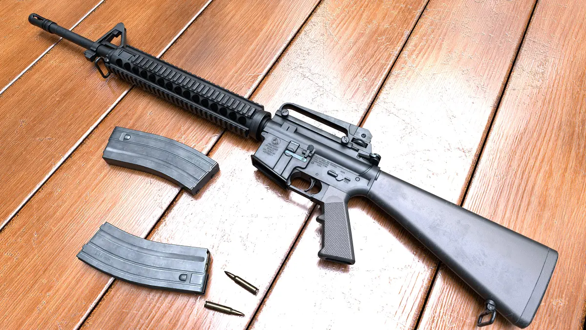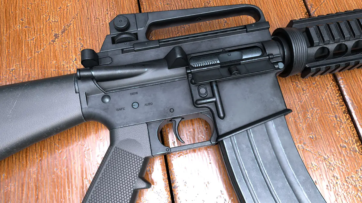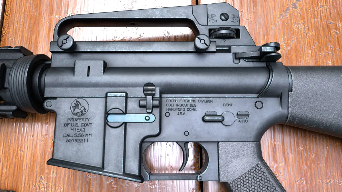 7 texture sets for upper receiver, lower receiver, buttstock, handguard, mag, carry handle, cartridge, respectively.