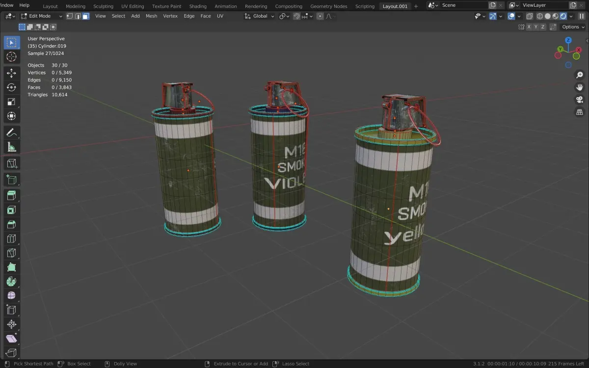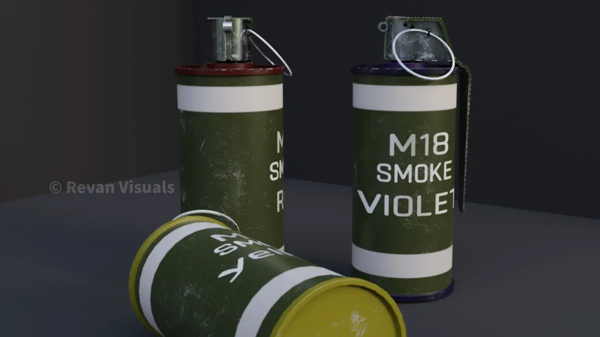 This pack includes 3 colors of smoke granade such as red yellow and violet.these grandes were modeled in blender 3.2 and textured in substance painter 3d.Each models contains 1281 polygons and 1758 vertices, Also this model includes textures for unity and unreal engine .Game M18 for PBR games and engines,renders,first person shooters,first person games,VR games and other projects.