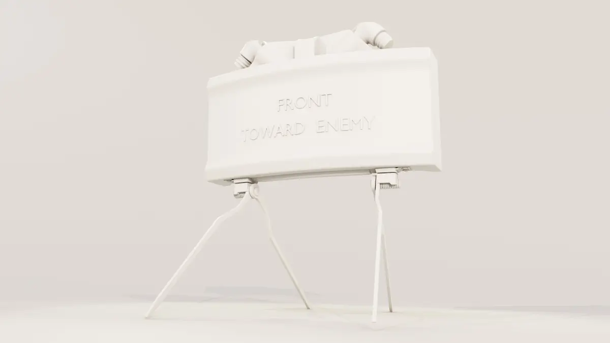 This model aims to be a realistic replication of the military anti-personnel M18A1 Claymore mine. It is intended for game asset usage, realtime / background and design visualization. Renders were done in Blender Cycles.