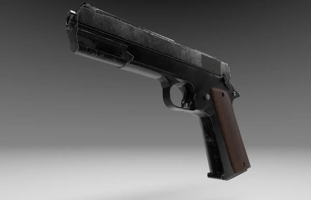 This is a M1911 Style pistol ready for use in games or VFX programs. The gun features seperated trigger, firing pin, barrel, magazine, mag release and ejector cover for the use of animating if need be. The model comes fully textured. Textures included. This model is available in FBX and OBJ format.