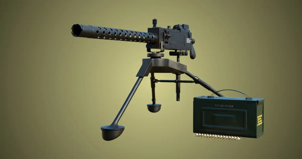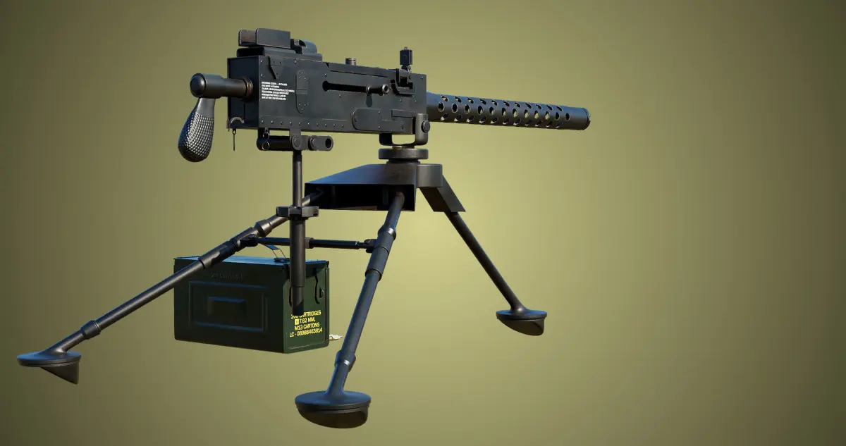 Photorealistic 3D model of M1919 Browning Gun03 and Stand, This Collection model is suitable for any visual production - broadcast, high-res film close-ups, advertising, games, design visualization, forensic presentation, etc.