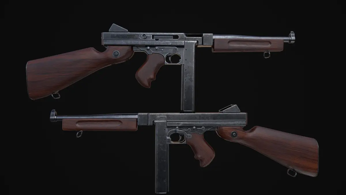 Iconic World War Two Thompson Sub machine Gun. Tested in Unreal engine.Texture Files saved in ORM, meaning roughness and the metallness map is stored inthe RGB channels.Triangle count: 13624Res: 4096x4096